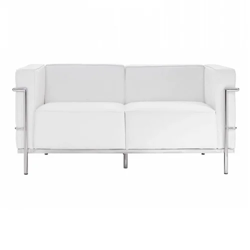 Item Description: A Mid-Century classic series, the White Cubed Arm Chair comes with leather seating, leatherette back and side with a chrome steel tube frame.