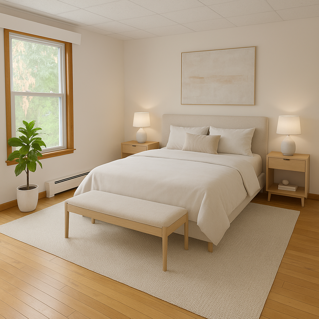 -Premium furniture & curated accessories for 1-2 key fully staged rooms